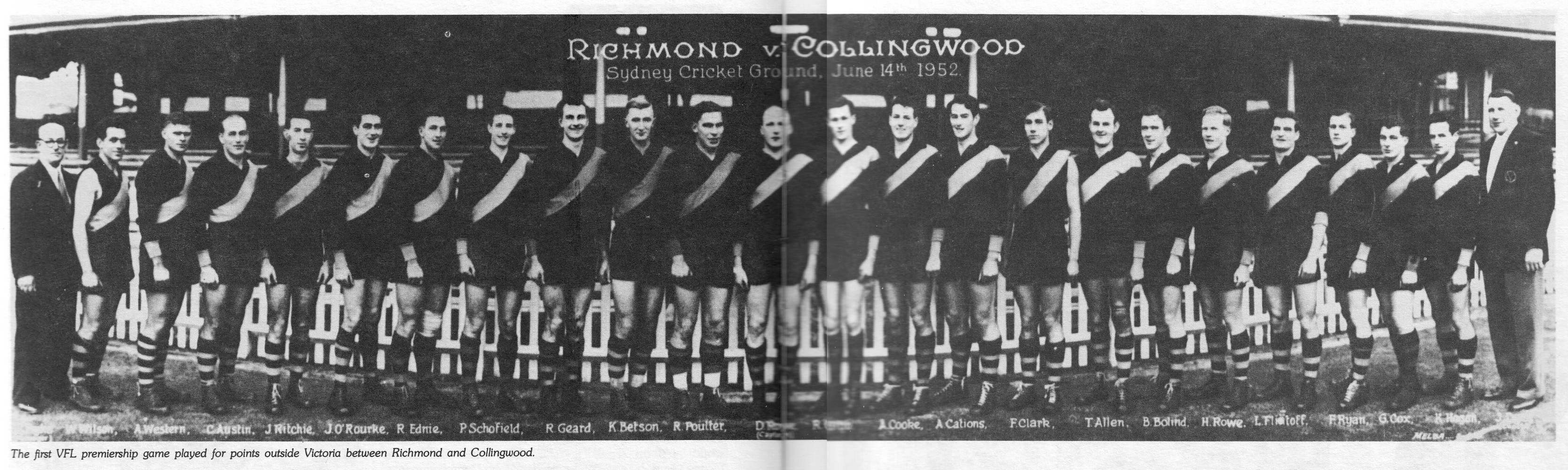 Round 8 of the 1952 season was a particularly special one for the then Victorian Football League, who, in conjunction with the Australian National Football Council (the game’s governing body), had planned a ground-breaking promotion of the Australian Football code by organising games for premiership points at interstate and country venues that weekend.